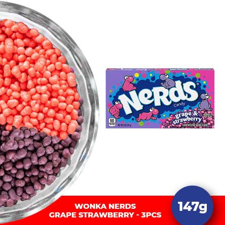 Каждый кристаллик этих неповторимых конфет Nerds – это воплощение высочайшего качества и непревзойденного вкуса. Нежное сочетание винограда и клубники, покрытое сладким и легким ароматом, приведет вас в восторг от первого жевания. Бесконечное удовольствие, которое пробудит в вас самые приятные воспоминания о детстве и создаст новые яркие впечатления и море наслаждения.