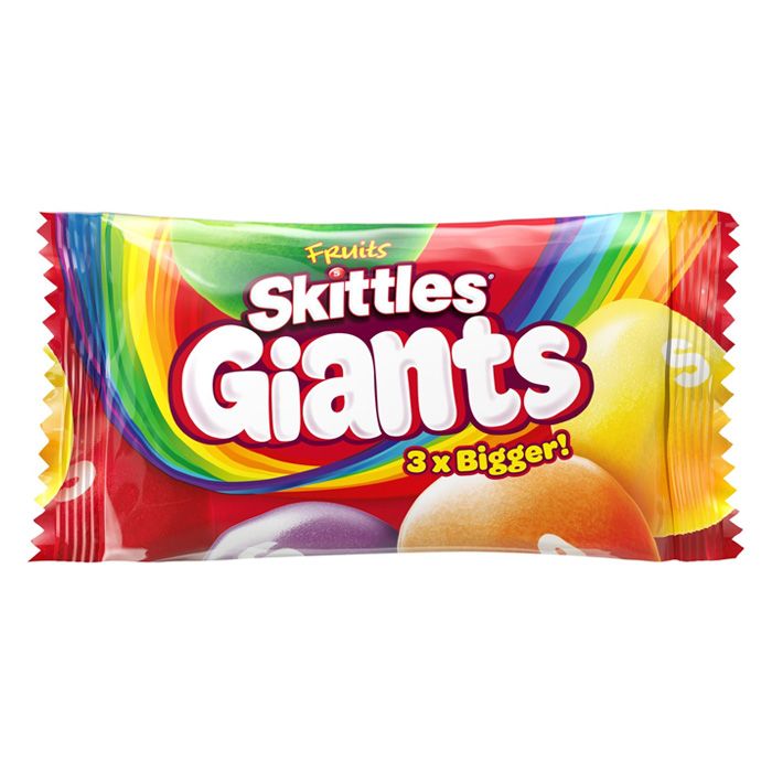 Увеличены в три раза драже становятся по-настоящему гигантскими Скитлс. Новая вариация привычной вкусняшки делает их необычными, и ещё более сочными.