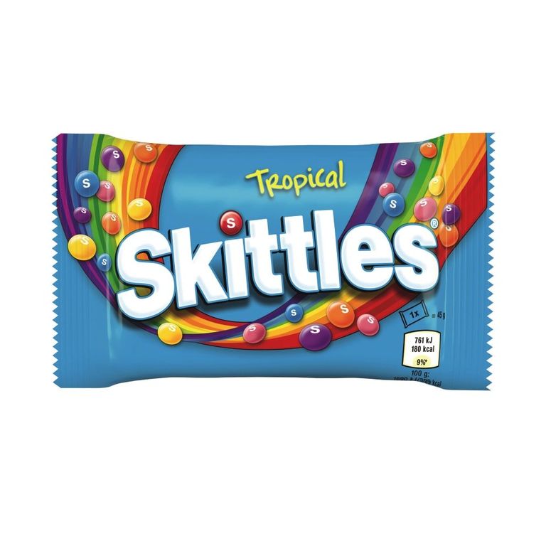 А какие сумасшедшие тропические вкусы Skittles Tropical: Банан, манго, киви-лайм, ананас-маракуйя, клубника-карамболь - они точно оставят бурю эмоций и впечатлений на весь день!