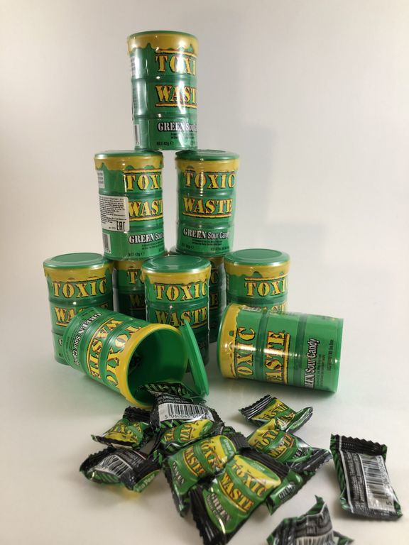 Это определённо Toxic Waste Green! Они не только входят в топ самых кислых конфет в мире, но и удерживают первые места!