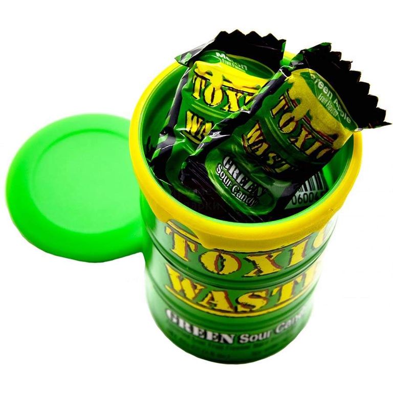 Это самые фантастические конфеты в мире! Toxic Waste Green упакованы в яркую баночку в виде бочки химических отходов, которая удивит каждого.