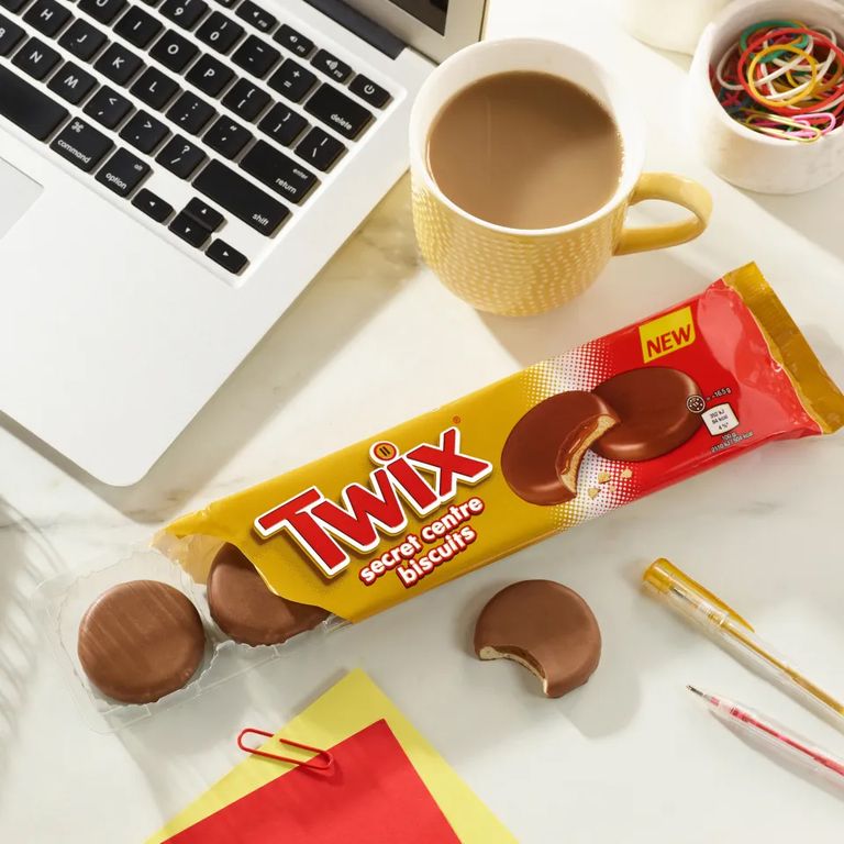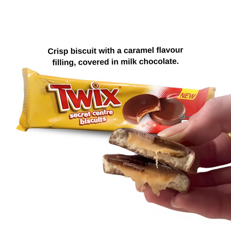 Познакомьтесь с новой версией легендарного Twix — теперь в виде печенья! Twix Secret Centre Biscuits — это хрустящее песочное печенье с мягкой карамельной начинкой, покрытое вкуснейшим молочным шоколадом.