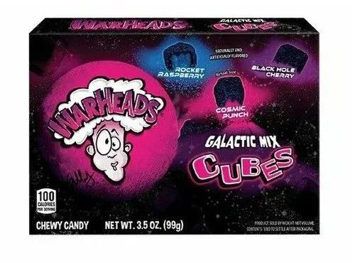 Warheads Galactic Mix Cubes — это мягкие, жевательные конфеты в форме кубиков с мощной кислинкой снаружи и насыщенной сладостью внутри. Вас ждут уникальные вкусы: